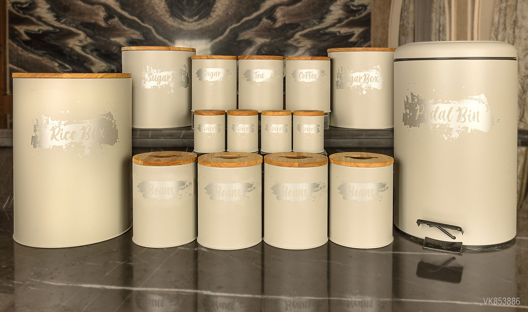 کالکشن سرویس آشپزخانه با نگاهی نو به ارگانایزرهای سنتی، طراحی مدرن و مینیمال را وارد آشپزخانههای امروزی کرده است. این مجموعه شامل سطل زباله، سطل برنج، قند و شکر، قوطیهای حبوبات، سماوری و عمومی در دو مدل درِ فلزی و درِ چوبی عرضه میشود و در ترکیبهای ۱۵ پارچه و ۸ پارچه یا بهصورت تک نیز قابل انتخاب است. استفاده از رنگهای سمبادهای و چاپهای خاص روی قوطیها، این مجموعه را از نمونههای قدیمی متمایز کرده است. سرویس آشپزخانه با الهام از ترندهای روز اروپا، ترکیبی از کارایی، زیبایی و نظم مدرن را به فضای خانه شما میبخشد.